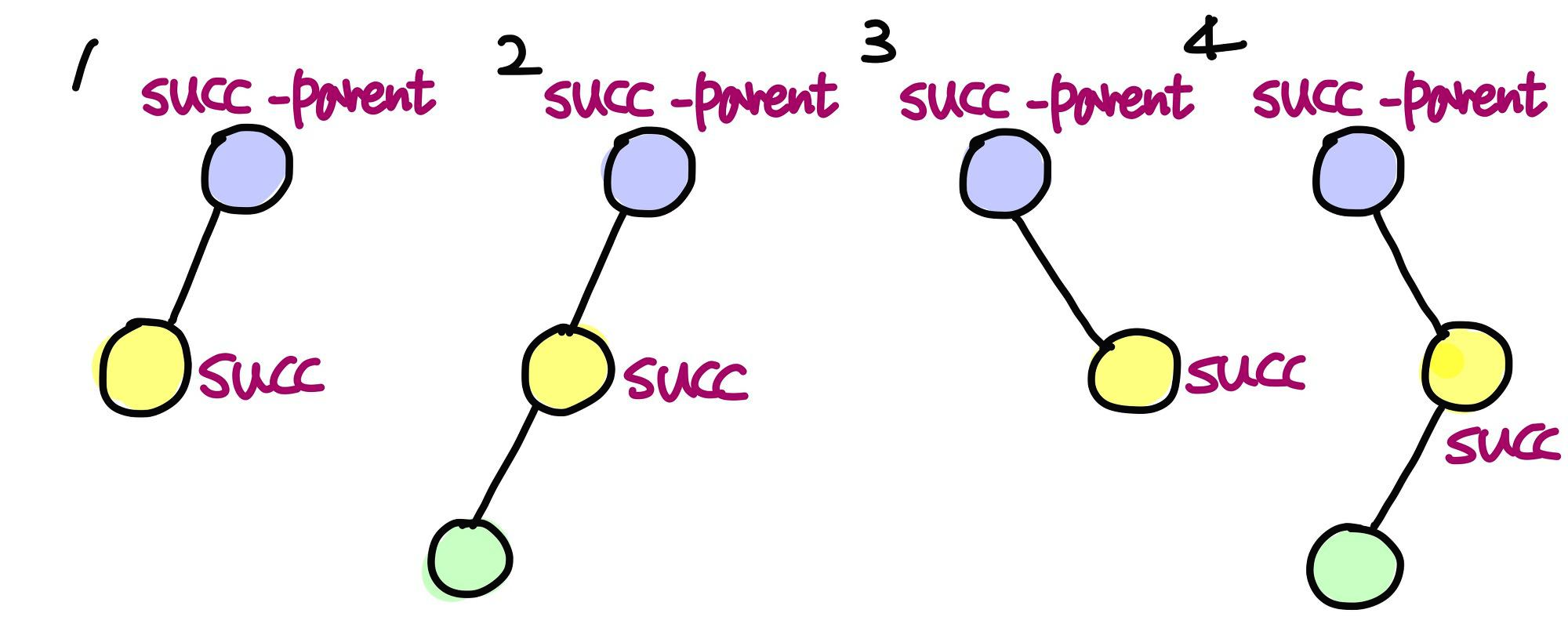 succ는 successor = 후계자의 약자로 succ 변수는 자식 노드를 두 개 가진 경우에 사용할 예정.