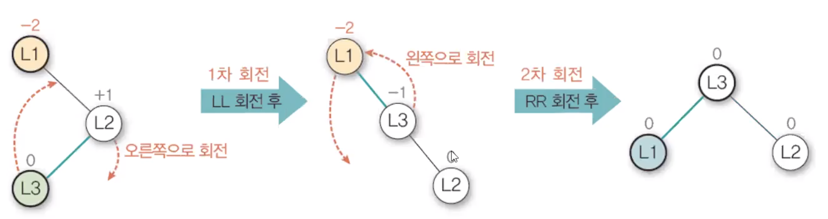 - 이중 회전(Double Rotation) - LR 회전과 RL 회전과 같이 두 번 회전하는 것