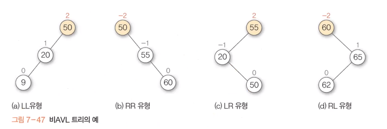 균형 인수가 +이면 왼쪽 서브 트리에 문제가 있는 것이고, -이면 오른쪽 서브 트리에 문제가 있는 것이다.